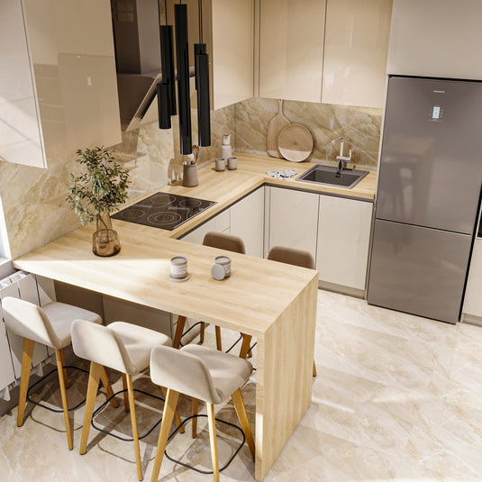 Este dificil să estimăm corect costul unei bucătării fără o discuție prealabilă cu clientul, deoarece trebuie să ținem cont atât de dimensiunile și particularitățile spațiului, cât și de preferințele pentru finisaje, materiale, sisteme și accesorii. De exemplu, alegerea unui blat din piatră sau a unor sisteme premium de feronerie poate schimba semnificativ bugetul față de o configurație de bază. Din acest motiv, evităm estimările superficiale și preferăm să discutăm în detaliu proiectul, pentru a oferi o ofertă personalizată, realistă și transparentă.